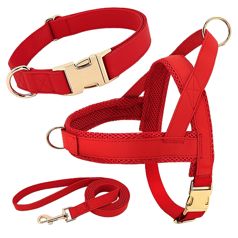 The sturdy dog collar ensures security and control, while the lead offers a comfortable grip during walks. With our dog harness, collar and leash set, you can embark on your outdoor adventures with confidence, knowing your pet is equipped with the best in comfort and style.